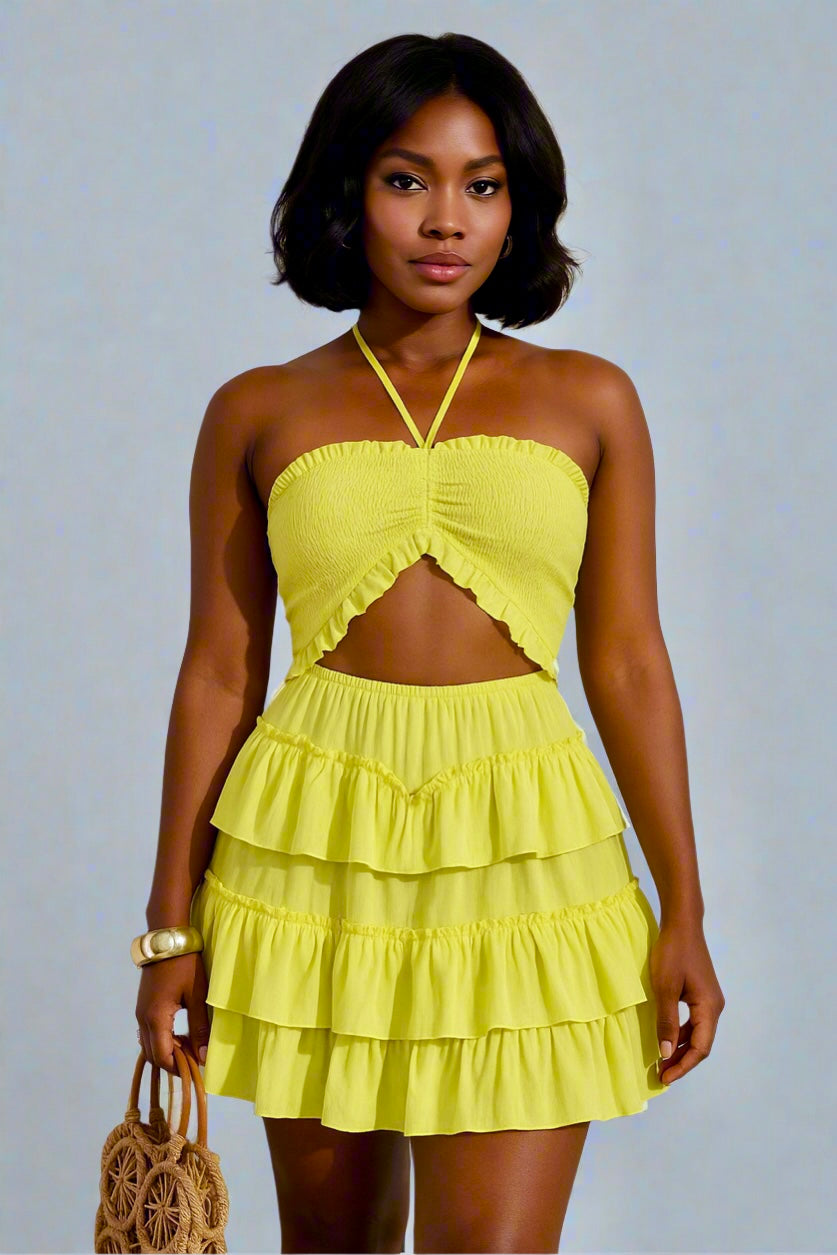 Away With Me Ruffled Halter Mini Dress